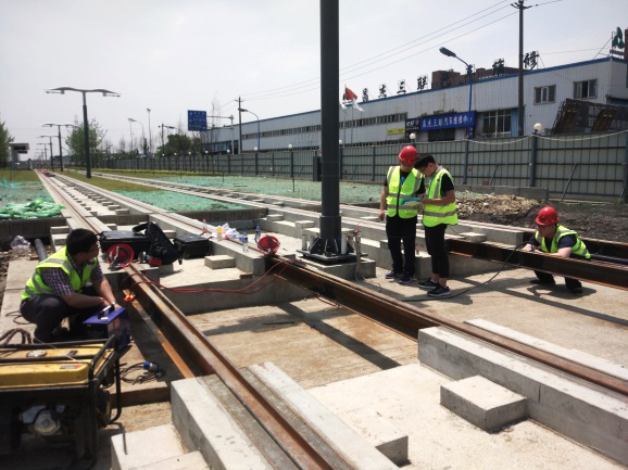? ? ? ?測試結果表明,嵌入式軌道鋼軌對地過渡電阻約為規范標準值10~15倍(規范規定新建線路對地過渡電阻≥15Ω·km),與預期結果一致。在嵌入式軌道中,鋼軌被高絕緣性高分子材料包裹,提升了鋼軌對地絕緣性能,可有效防止雜散電流的產生。在通過燃氣管線、輸油管道等具有雜散電流防治要求的路段時,具有良好的應用優勢。
