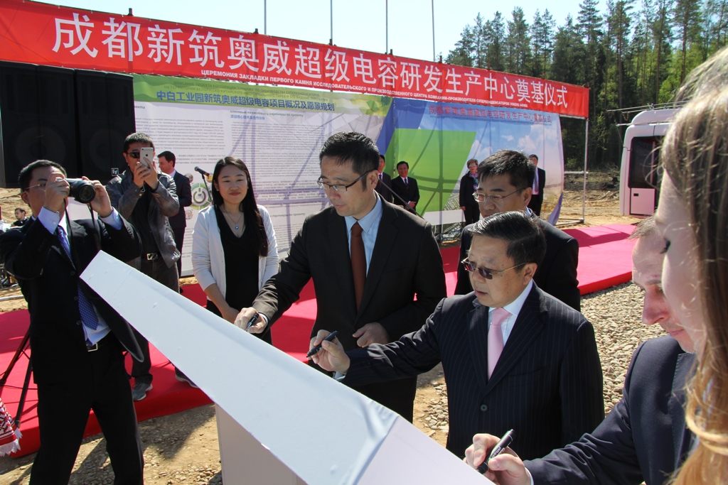 ? ? ? ?中白合資公司CEO胡政和中國駐白俄羅斯大使館劉雪松參贊發言時總結新筑奧威超級電容項目是中白工業園“四個第一”項目:即是園區第一個正式動工的生產型企業;第一個已取得白俄羅斯具體訂單的項目;第一個入園的具有世界領先水平的高科技項目;第一個當年開工,當年竣工的入園企業在建項目。