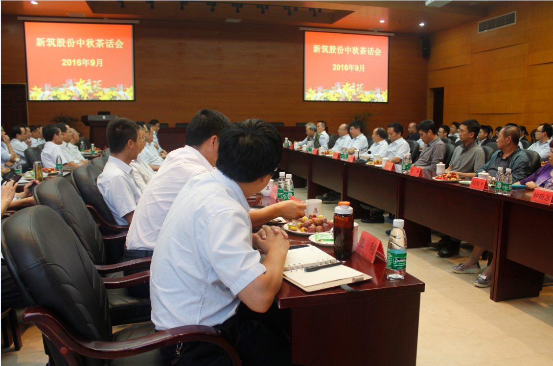 ? ? ? ?金風(fēng)送爽,中秋月圓。中秋佳節(jié)來臨之際,9月14日下午,新筑股份2016中秋茶話會在223會議室順利召開,公司高層領(lǐng)導(dǎo)與各單位骨干人員共計100余人歡聚一堂,共慶佳節(jié),共敘友情,共謀發(fā)展。公司董事長黃志明、總裁馮克敏和相關(guān)公司領(lǐng)導(dǎo)出席了此次茶話會議,會議由總裁馮克敏主持。