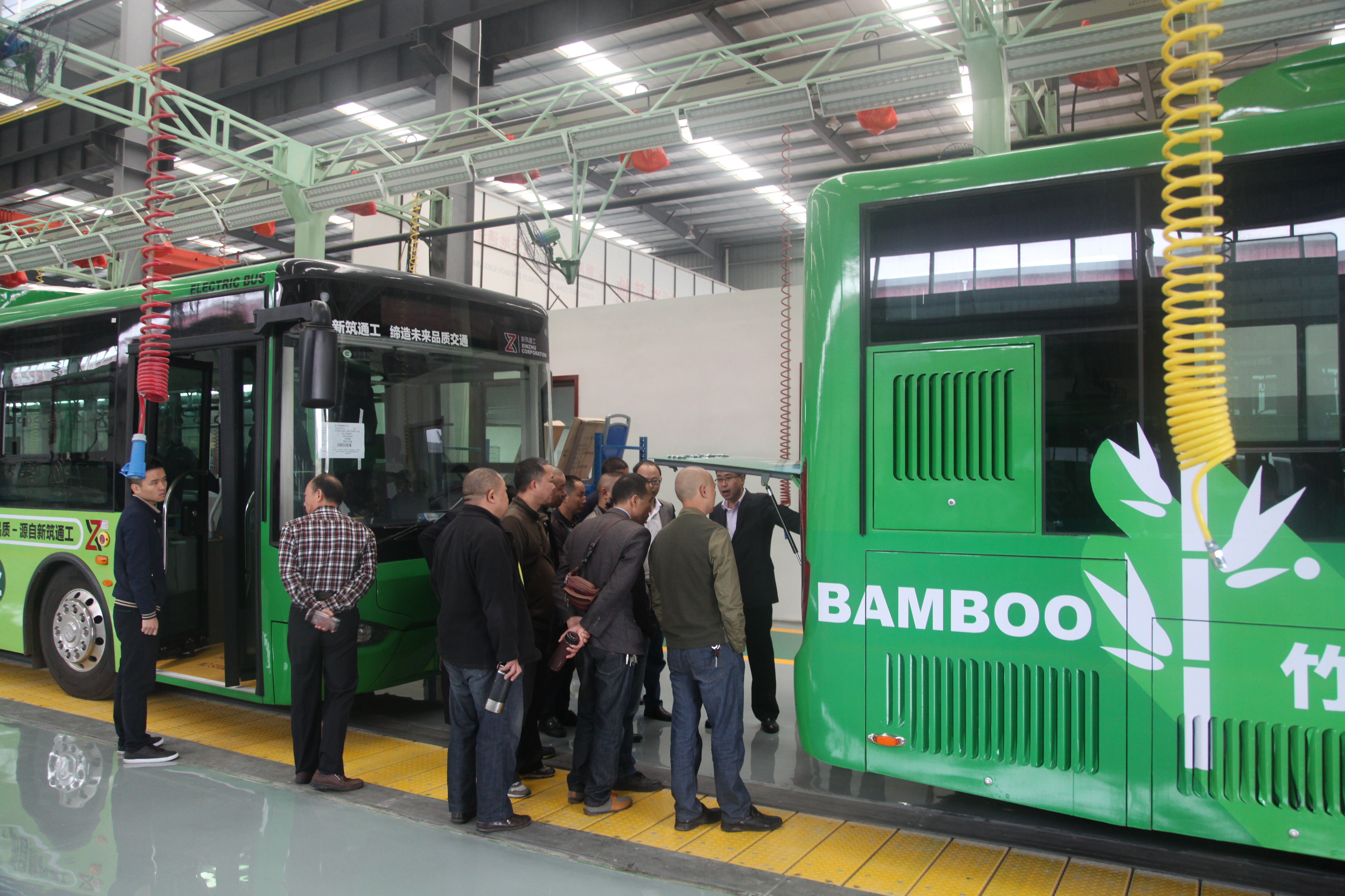 ? ? ? ?10月18日,中國西部第一條純電動在線快充公交示范線即將在雅安7號線開通!新筑通工自主研發制造的六輛已獲取正式“身份證”的純電動公交車已換上新裝,整裝待發!昨日,雅安蜀通公司領導、公交車駕駛員等一行走進新筑通工公司,見到了即將與大家見面的六輛純電動公交,車輛別具一格的外觀,舒適的內部構造,讓在場的駕駛員們愛不釋手!