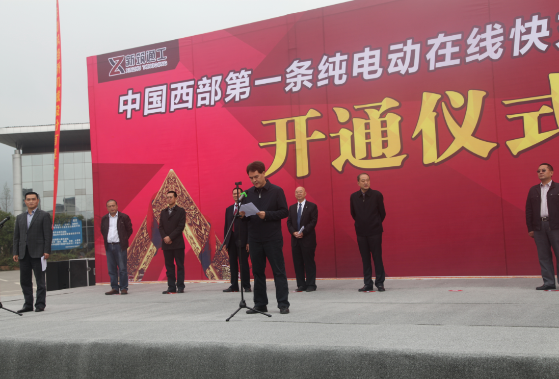 ? ? ? ?2016年10月18日上午10時(shí),中國西部第一條純電動(dòng)在線快充公交示范線開通儀式在雅安東站舉行,雅安市委副書記、市長蘭開馳,市政府副市長王冬林,公司總裁馮克敏、新筑通工董事長黃克明等領(lǐng)導(dǎo)出席了此次開通儀式。由新筑通工自主研發(fā)的首款超級(jí)電容城市客車首次開通運(yùn)行將有6臺(tái)新車投入雅安公交7號(hào)線使用。