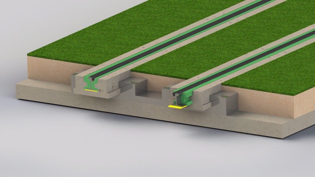 ? ??嵌入式軌道系統全稱“嵌入式連續支撐無砟軌道系統”,是將鋼軌嵌入到混凝土整體道床板中,采用彈性墊板連續支撐、高分子澆注料鎖固鋼軌的一種無扣件新型軌道結構。該軌道系統主要由預制軌道板、鋼軌、彈性支撐構件、高分子材料等組成。