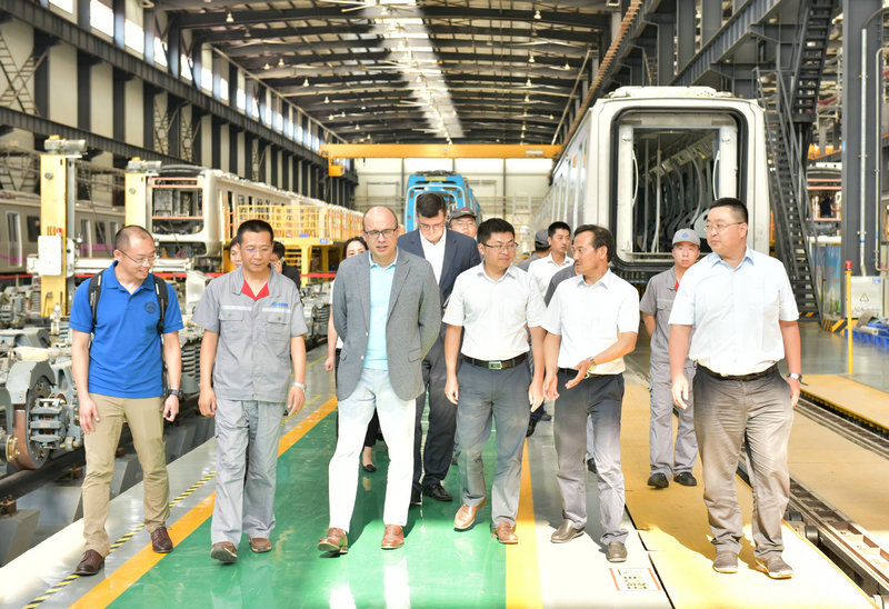 ? ? ? ?基·瓦·魯?shù)麓笫挂恍惺紫仍诠径麻L(zhǎng)黃志明和公司副總經(jīng)理杜曉峰的陪同下,參觀了新筑軌道交通裝備生產(chǎn)基地,對(duì)軌道交通產(chǎn)業(yè)發(fā)展情況進(jìn)行參觀交流,基地總工程師姜中輝就基地情況、裝配能力、軌道交通產(chǎn)品優(yōu)勢(shì)及市場(chǎng)應(yīng)用等方面進(jìn)行了系統(tǒng)介紹。