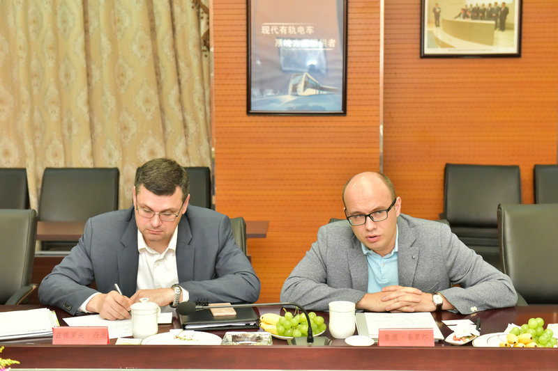 ? ? ? 6月27日下午,在新津縣外事辦和新津縣政府相關(guān)領(lǐng)導(dǎo)的陪同下,魯?shù)隆せ餇枴ね哌B其諾維奇一行到訪新筑股份。這是繼新筑入駐中白工業(yè)園、超級(jí)電容純電動(dòng)公交車投入明斯克市場(chǎng)以后,雙方進(jìn)行的又一次深度交流。