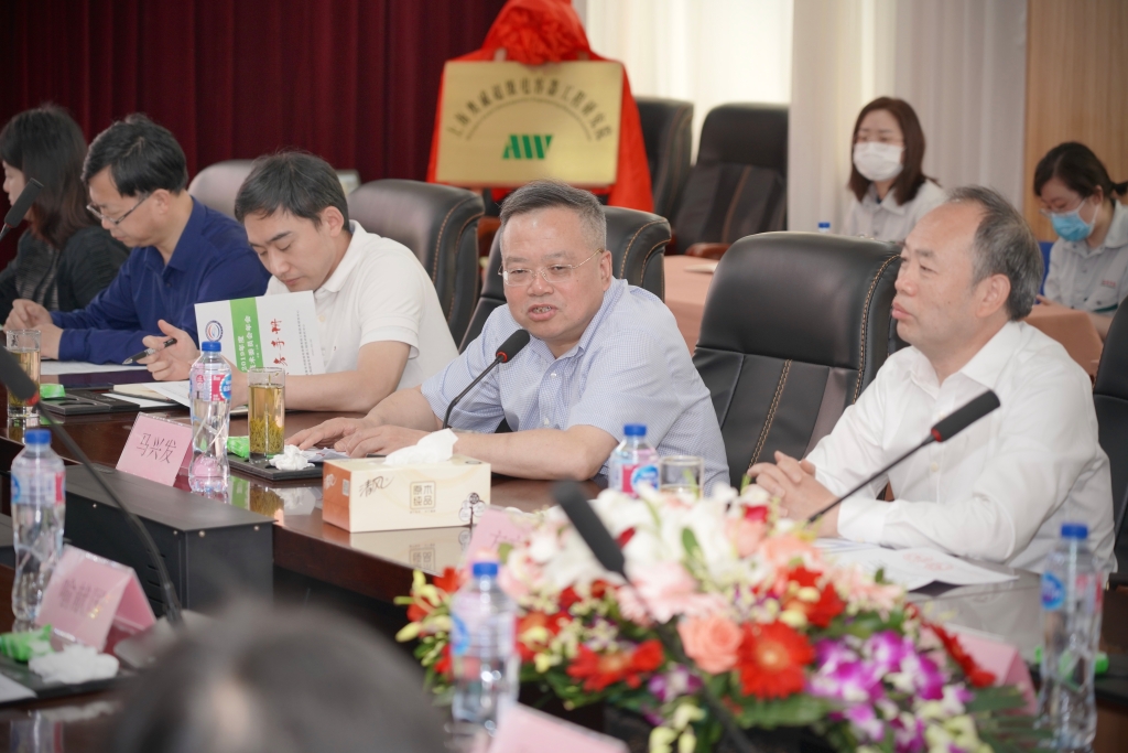 圖注:上海市科協(xié)黨組書記馬興發(fā),左右兩邊分別是上海市民政局二級巡視員方文進(jìn)(年長者),上海市科委基地處處長仲東亭