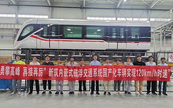 新筑股份的國產化磁浮車輛動態調試過程中,逐個克服了磁浮道岔區段、100‰坡道和60m半徑彎道疊加線路、多軌道梁型復合線路等復雜試驗線路環境的挑戰,在遠少于預期的調試時間內,實現了車輛120km/h速度穩定運行的動態調試目標。