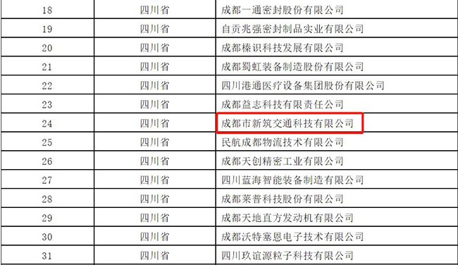 為深入貫徹習近平總書記關于“培育一批‘專精特新’中小企業”的重要指示精神,工業和信息化部于近日完成了第五批專精特新“小巨人”企業培育和第二批專精特新“小巨人”企業復核工作,四川省經濟和信息化廳于7月14日對我省通過審核的企業名單予以公示,成都市新筑交通科技有限公司(以下簡稱“新筑交科”)成功入選第五批國家級專精特新“小巨人”企業名單。
