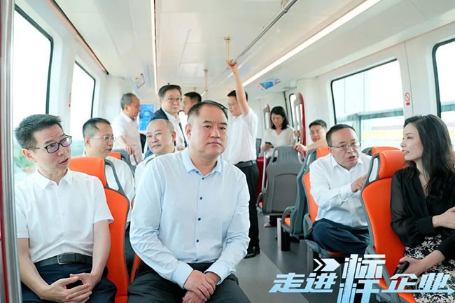 在《走進(jìn)標(biāo)桿企業(yè)》活動期間,還專門安排了國產(chǎn)化內(nèi)嵌式中低速磁浮車輛試乘環(huán)節(jié),到場的領(lǐng)導(dǎo)、嘉賓親身體驗了這種新興軌道交通方式。