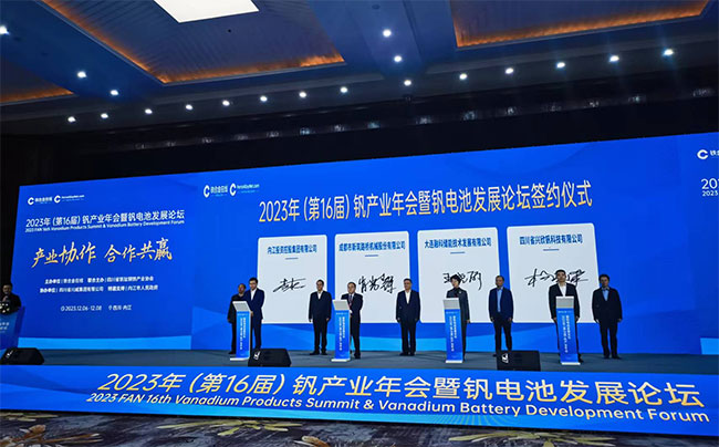2023年12月7日,成都市新筑路橋機械股份有限公司(以下簡稱公司)在四川省內江市舉辦的2023年(第十六屆)釩產業年會暨釩電池發展論壇上,與內江投資控股集團有限公司(以下簡稱內投集團)、大連融科儲能技術發展有限公司(以下簡稱大連融科)、四川省興欣釩科技有限公司(以下簡稱興欣釩)就釩液流電池儲能產業集群建設、釩液流電池儲能示范試點項目建設、釩液流電池儲能技術創新平臺建設、釩液流電池儲能推廣應用等方面簽訂了為期5年的《戰略合作框架協議》,進一步深化合作,實現優勢互補。