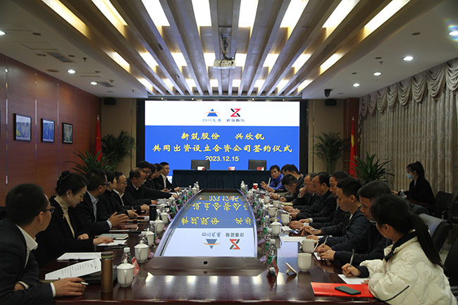 12月15日,成都市新筑路橋機械股份有限公司(以下簡稱新筑股份)與四川省興欣釩科技有限公司(以下簡稱興欣釩)在成都市簽署《合資協議》,雙方將共同出資設立四川發展興欣釩能源科技有限公司(暫定名,最終以工商部門核準登記為準,以下簡稱合資公司)。四川省川威集團有限公司(以下簡稱川威集團)董事、首席投資官王思中和新筑股份黨委書記、董事長肖光輝出席并致辭。新筑股份黨委副書記、董事、總經理夏玉龍主持簽約儀式。川威集團總工程師謝建國,財務中心總經理張弛;成渝釩鈦副總經理鐘云慶;川威集團運管中心科技部部長劉在波,風控中心合規部部長劉鄰;興欣釩董事長楊雪峰;成渝釩鈦副總工程師兼四川星明能源總經理蒲年文;新筑股份黨委副書記、財務總監 賈秀英,黨委委員、紀委書記許一鳴,董事會秘書、副總經理張楊,黨委委員、副總經理楊麗,黨委委員、黨委組織部部長、工會主席王小紅等參加簽約儀式。